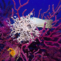 Una meravigliosa gorgonia bianca tra rami di gorgonie gialle